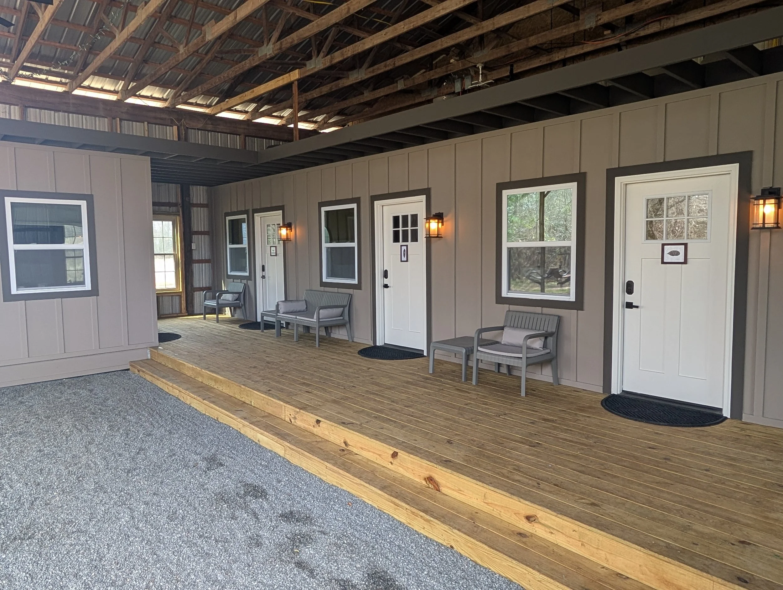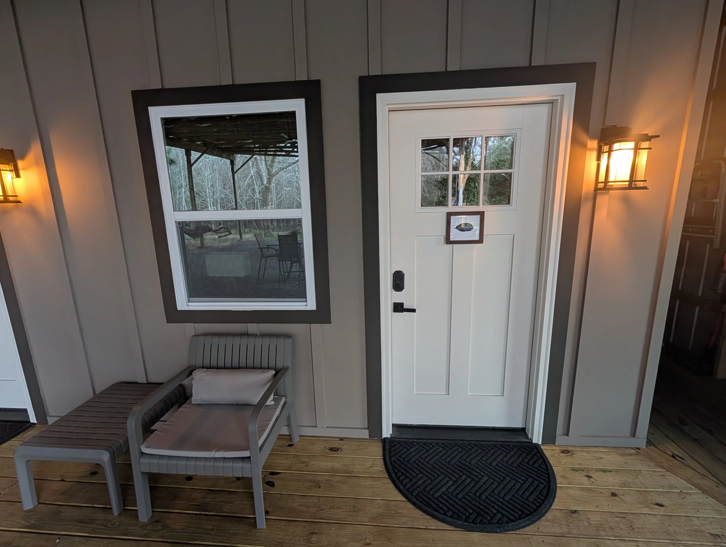 The Simple Life Studio - Tucked magically in the pines and adjacent to the pond, is this unique tiny home. It has a full size bed, tiny fridge, A/C ,Heat and a small screen porch. If you want to really “reset” there is no better room on the property. While it may be simple it’s comfortable and only a short walk to our bath house and outdoor kitchen. $100nt